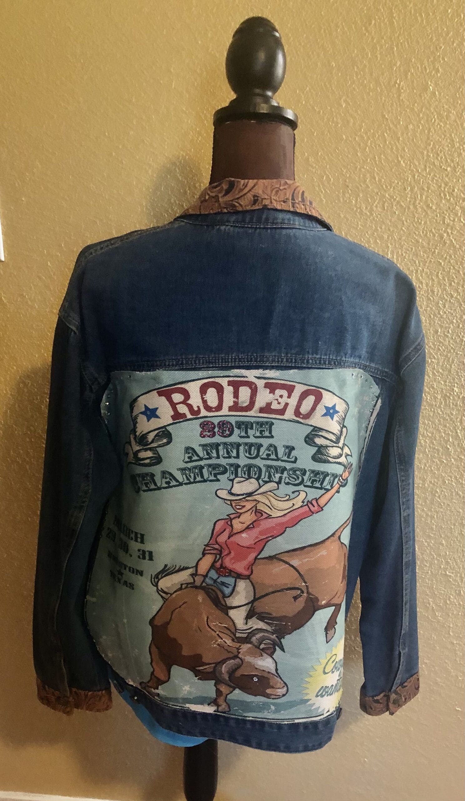 Back is rodeo cowgirl print that has been blinged out with crystals.