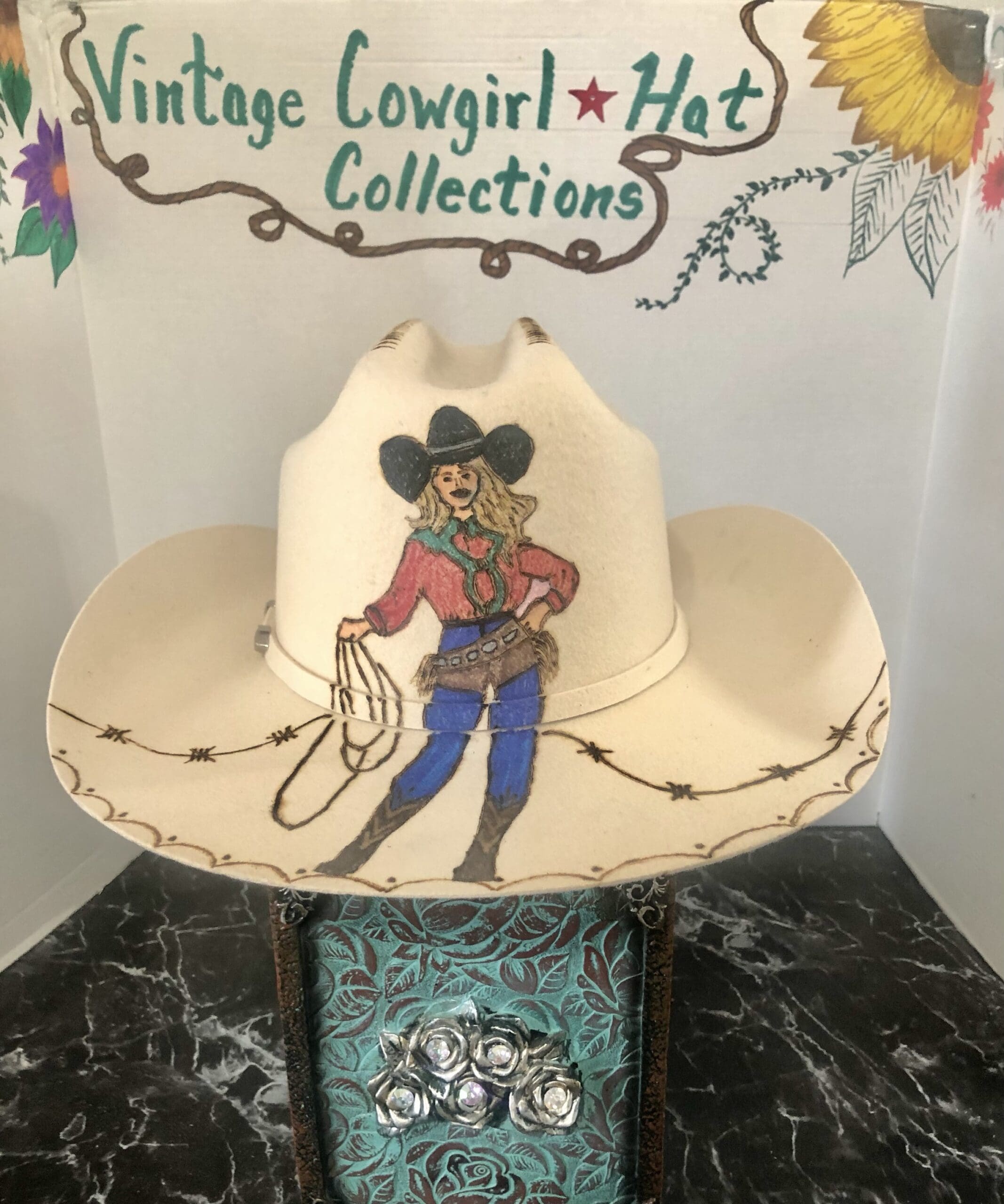 vintagecowgirlcustoms.com or locally in our Vintage Cowgirl Hat Collections Studio in Springtown Texas.