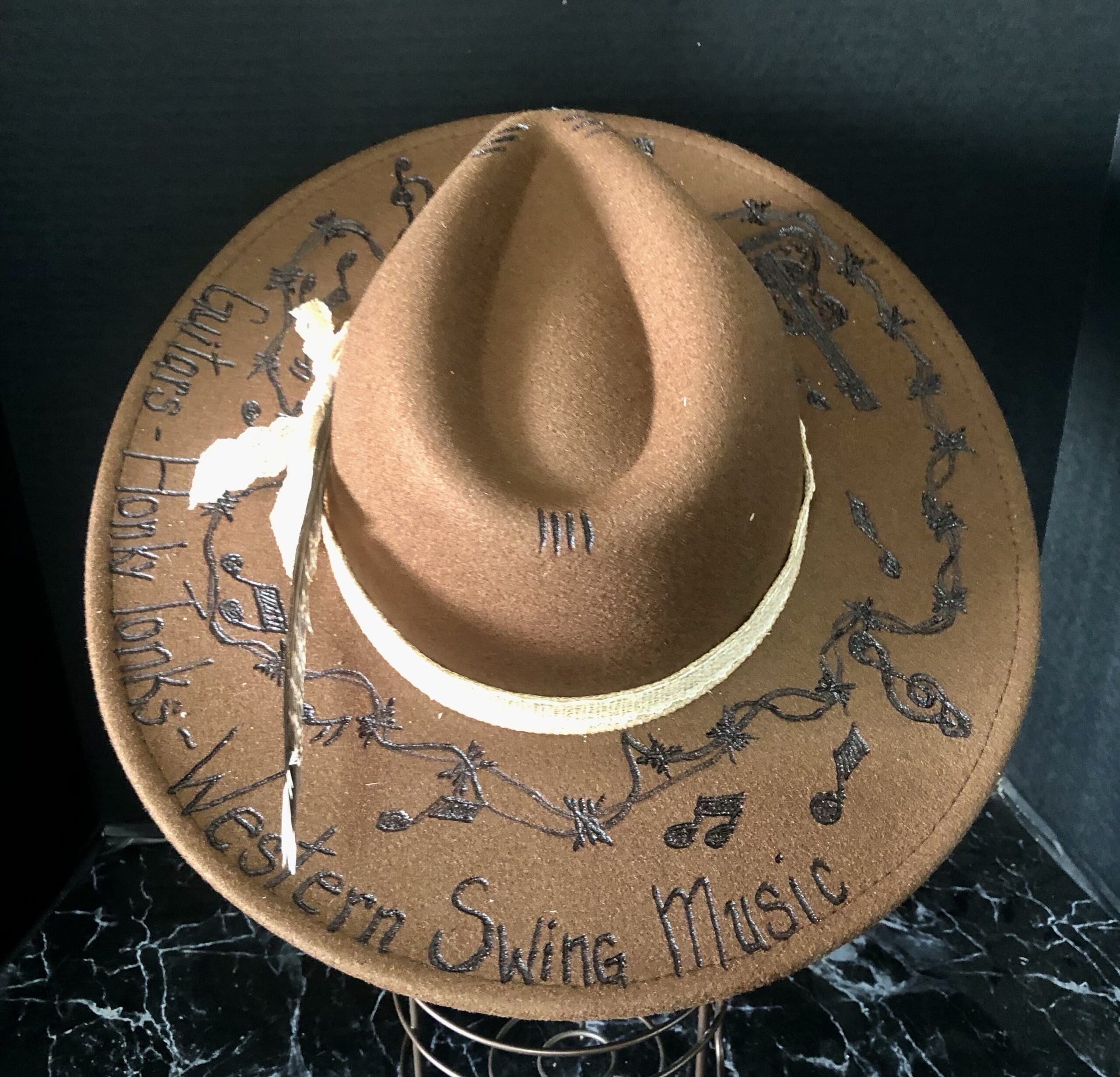 The Western Swing rustic brown felt is a new design in honor of the music of Texas.